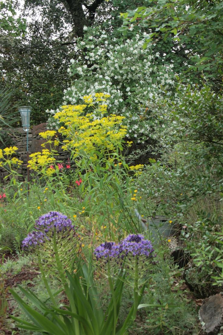 Ce jardin occupe une superficie de 1600m2 sur une terre faite d’argile et de calcaire. Les premières plantations débutèrent en l’an 2000. Ici, les ambiances se croisent bien que la tendance générale soit méditerranéenne.
