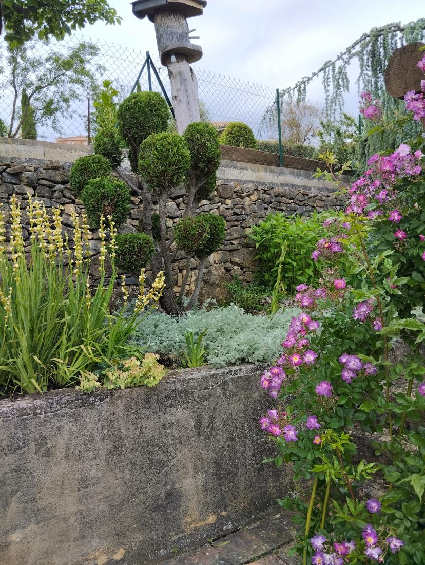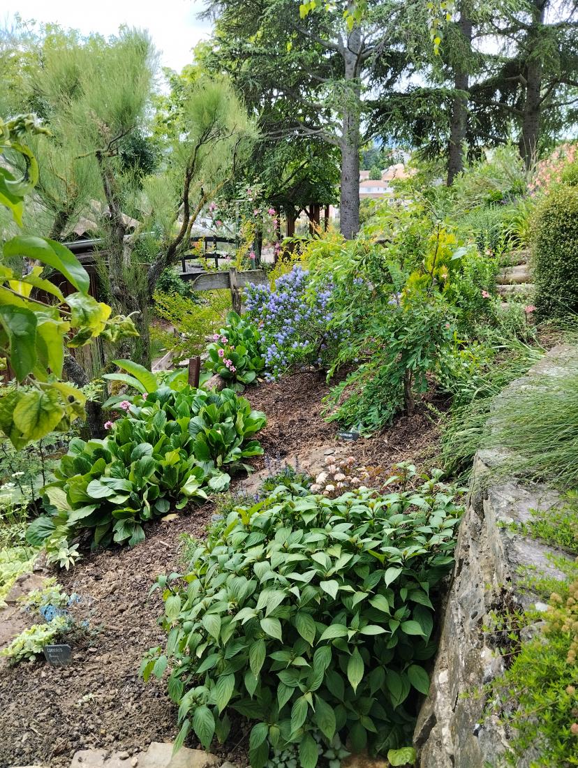 Sur les coteaux de Millau plein sud, des jardins à l'anglaise sur un terrain en pente de 2300m² aménagés en petites terrasses.