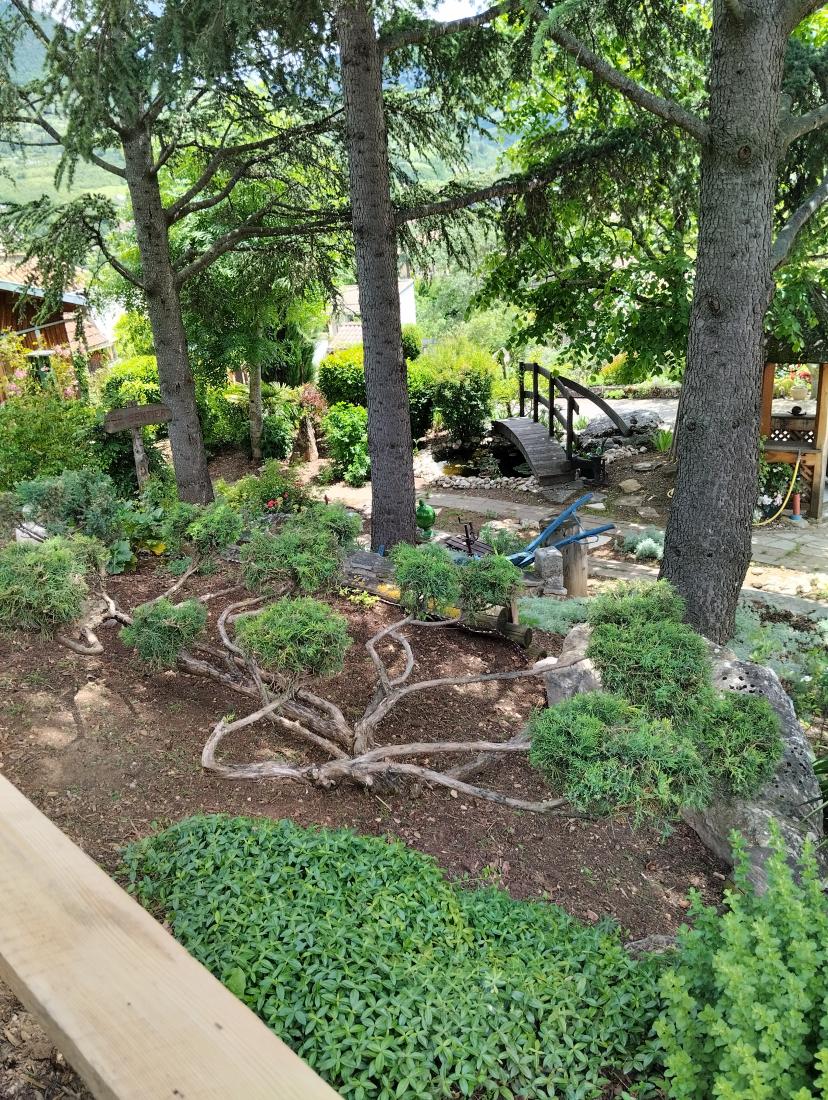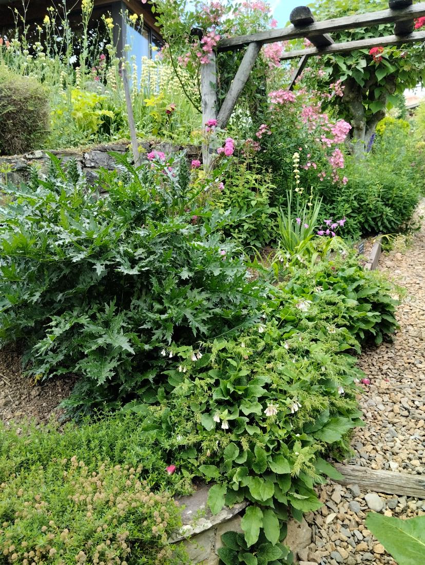 Créé par deux amateurs pour qui la passion de l'aménagement s'allie à celle du jardinage, le jardin à été soigneusement structuré, sans plan précis mais avec une succession d'univers, en fonction de l'exposition et du sol. Murets de pierres et palissades en bois retiennent la terre et forment des terrasses où de nombreuses variétés de plantes, d'arbustes, et d'arbres se cotoient.