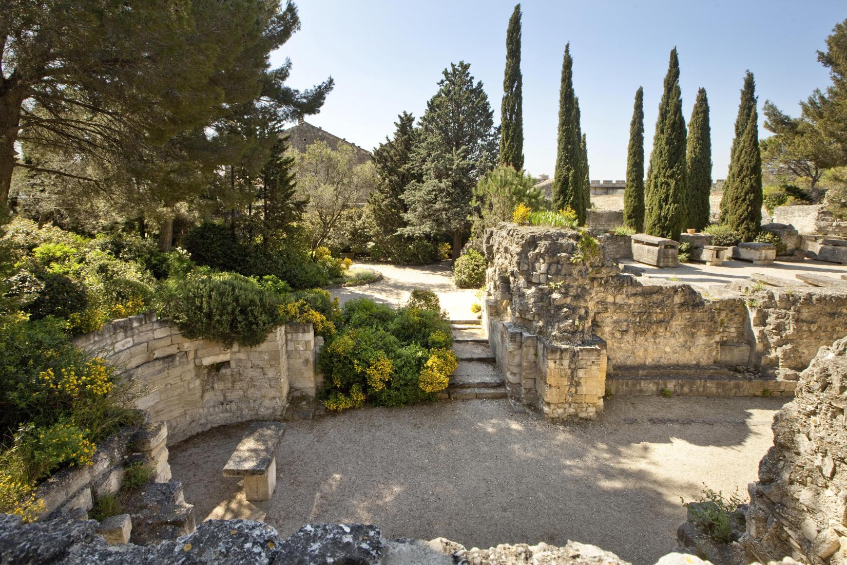 Visitez un site unique dont l’histoire remonte au VIe s. Située sur le mont Andaon, dans l’imposante enceinte du Fort Saint-André, l’abbaye bénédictine et royale domine le Rhône et fait face à la Cité des Papes située sur l’autre rive. Fondée au Xe s, son Palais Abbatial sera remanié par Mignard, architecte du roi Louis XIV, reflétant la magnificence et l’élégance du XVIIIe s. Les jardins en terrasses de style "Renaissance toscane" et Méditerranéen, sont classés "Jardin Remarquable" depuis 2014. Ils s’étalent entre les vestiges des églises romanes et des tombeaux du Haut Moyen Âge, laissant découvrir des parterres fleuris de rosiers anciens, des plantes méditerranéennes, ainsi que pins et oliviers centenaires. Les terrasses offrent un panorama exceptionnel sur le Palais des Papes, les Alpilles, le Luberon, le Ventoux et les Dentelles du Montmirail. Tout ici laisse deviner l’important passé de ce lieu puissant et harmonieux, tremplin de l’imaginaire.