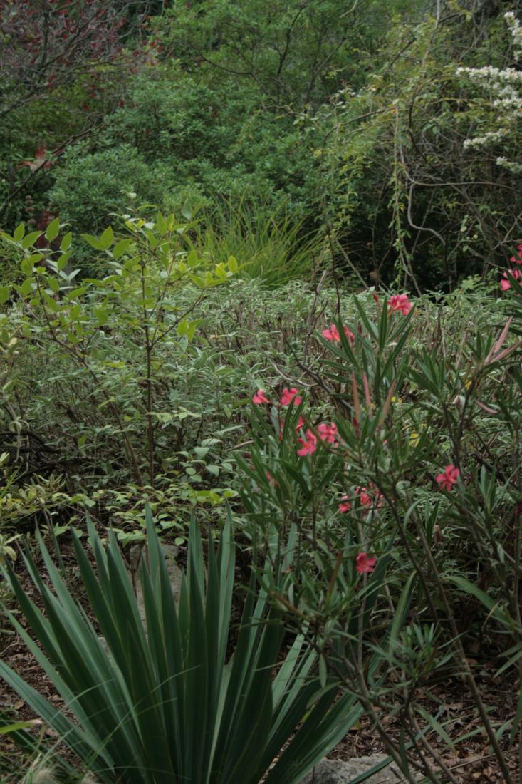 Au dernier recensement 600 espèces occupent ce territoire, les plantes sont de toutes provenances. L’Arizona avec la graminée (Muhlenbergia emersleyi), la Chine avec un chèvrefeuille (Ionicera standishii), le Brésil avec un fuchsia (Fuchsia regia) le Chili avec un escallonia (Escallonia tucumanensis) l’Argentine avec (Aloysia virgata) l’Australie avec un rince bouteille (Callistemon acuminatus) etc…