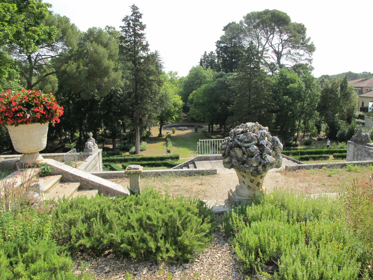 Ce jardin à la française, en trois terrasses successives auxquelles on accède par un escalier à double révolution, a été dessiné au XVIIIe siècle. Fontaines et statuaire originale en sont une des composantes. Proche du lac, et particulièrement remarquable, la Coquille est une grotte ornée faite de coquillages.